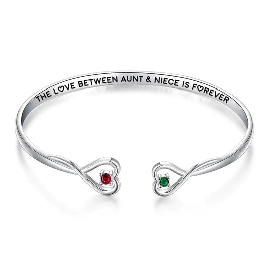 THE LOVE BETWEEN AUNT & NIECE IS FOREVER DOUBLE HEARTS CUSTOM BIRTHSTONES BRACELET