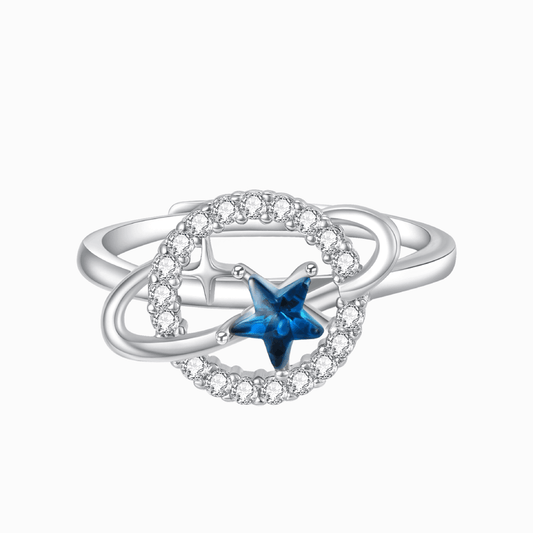 Always Under the Same Moon Crescent Moon & Star Ring
