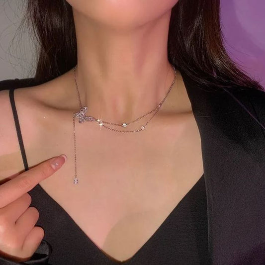 🌸2024 Spring Hot Sale✨Sparkling Zircon Butterfly Tassel Necklace