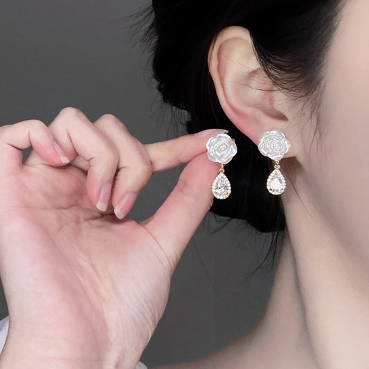 🌸White Camellia Diamond Earrings