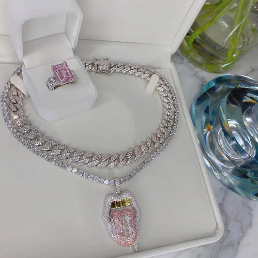 Iced Out Bling CZ Cubic Zirconia Tongue Necklace