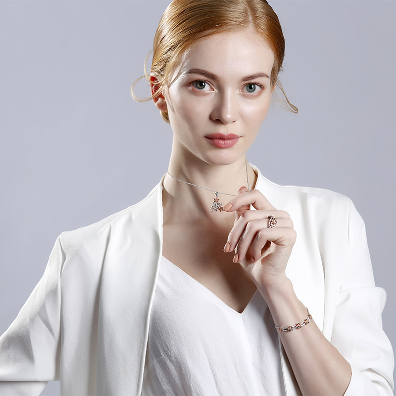 This bright and beautiful flower ring is a delightfully feminine choice. Sparkling with the excitement of the moment, this ring blooms with your love. It features five flowers in rose gold tone accross the center of the shank, while shimmering round stones add more sparkle to the design. These blooming flowers symbolize beauty, femininity, love and romance.