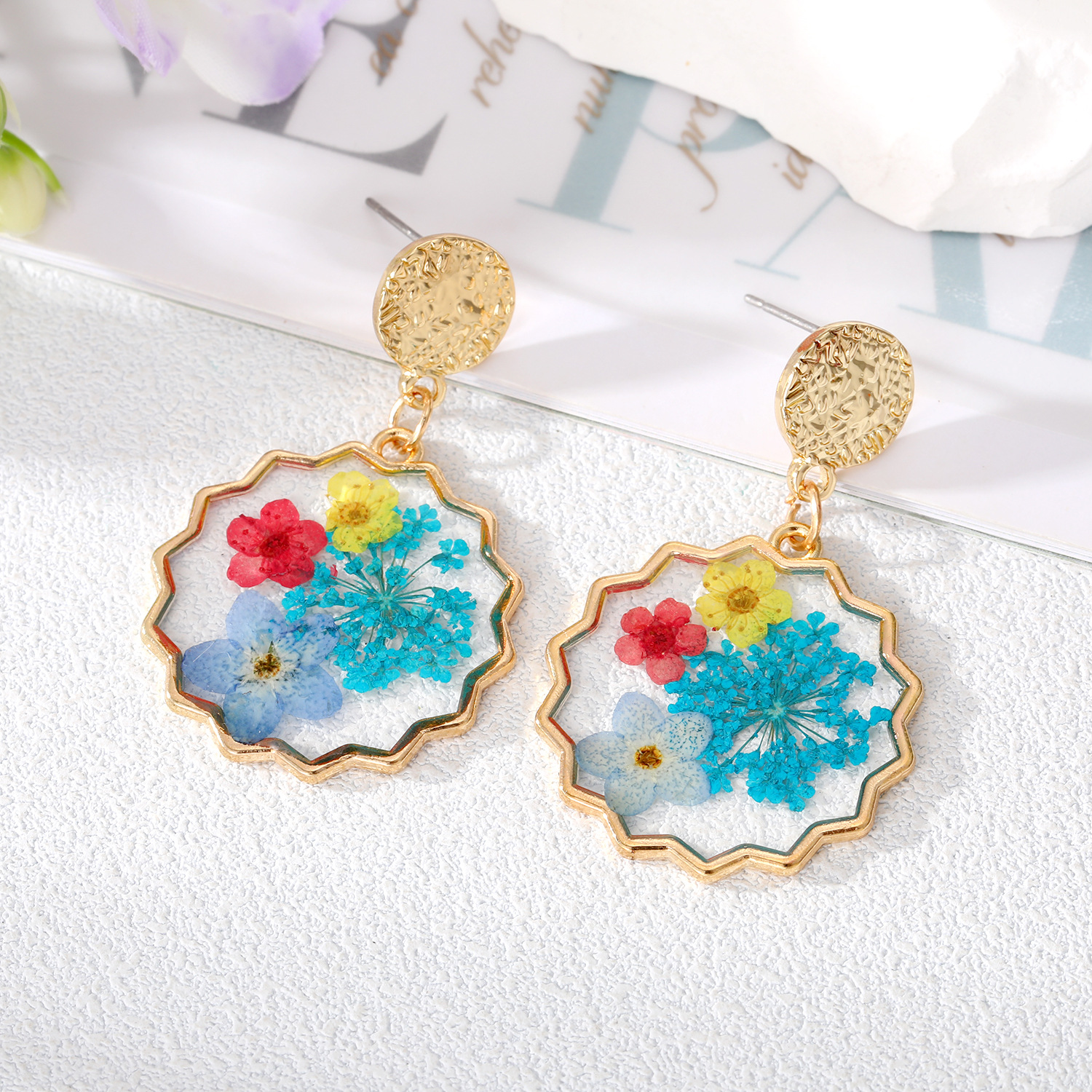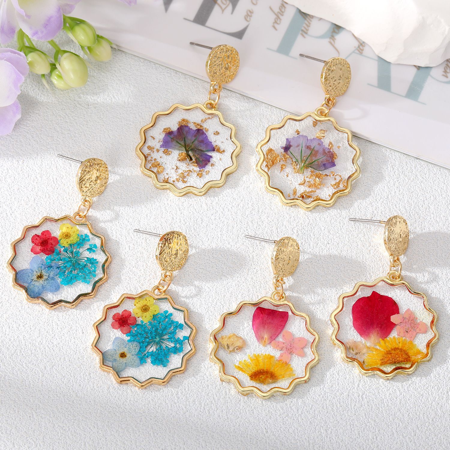 - Material: Metal, Real Pressed Flowers, Resin