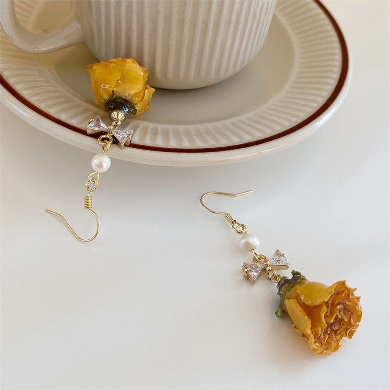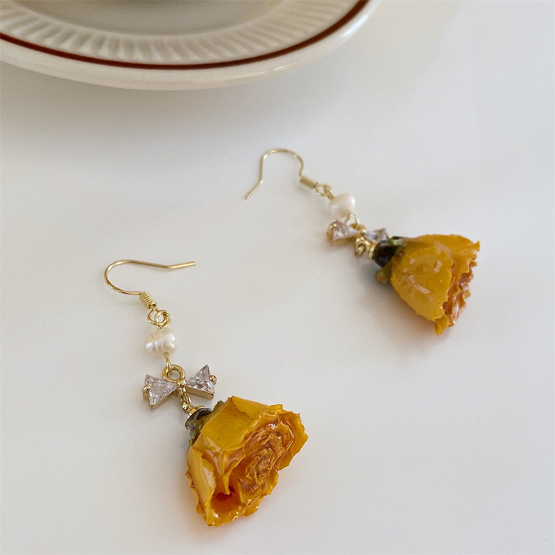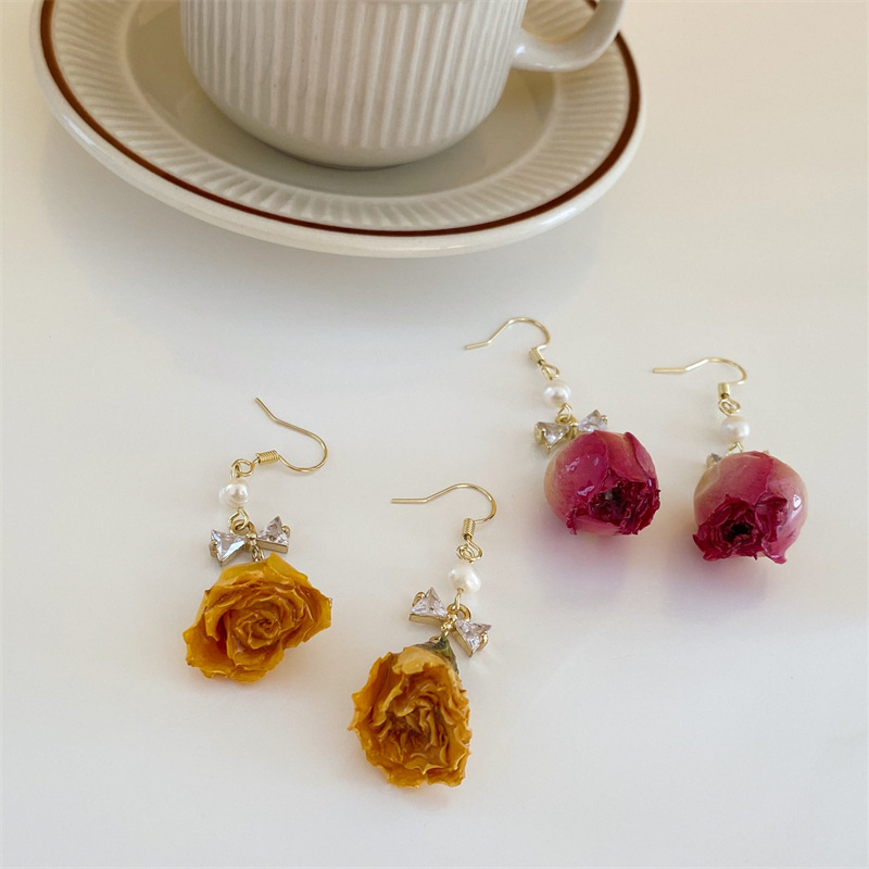 Vintage Rose Dried Flower Earrings
