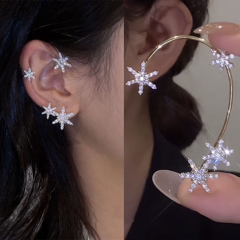 - 1*Snowflake Windmill Rotatable Style Zircon Earrings