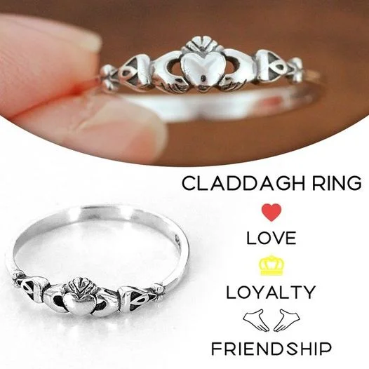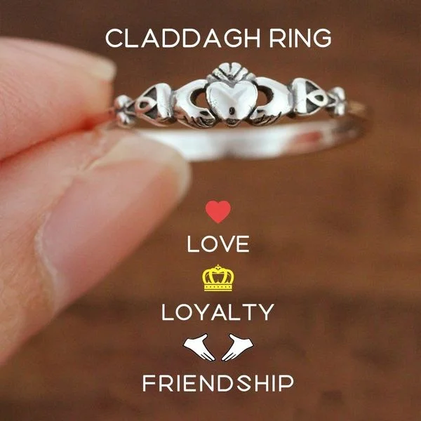 The Claddagh ring is a traditional Irish ring which represents love, loyalty, and friendship (the hands represent friendship, the heart represents love, and the crown represents loyalty).