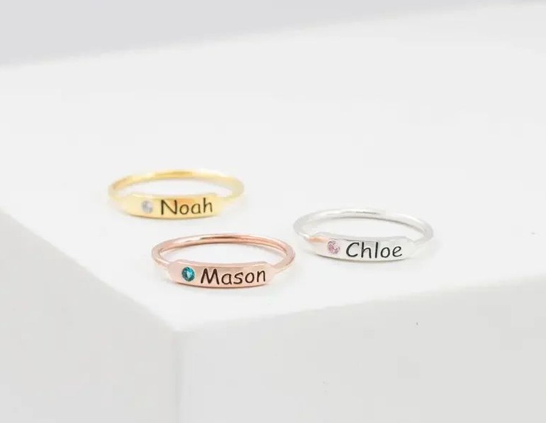 - 1*FOR MEMORIAL - CUSTOM NAME & BIRTHSTONR RING