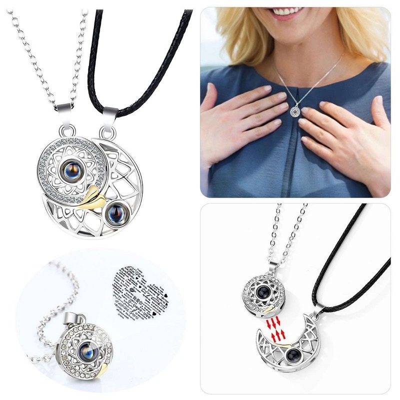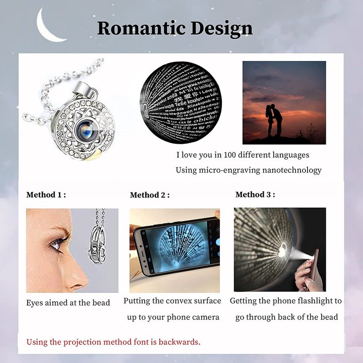 Get this beautiful Projection necklace combined with 100 Language I Love you necklace for your lover, wife and melt her heart.