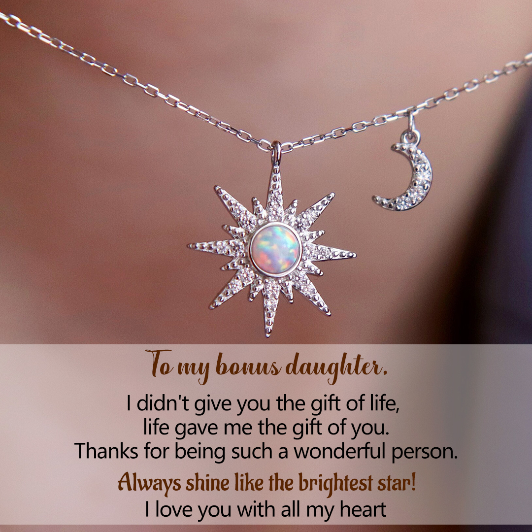 For Bonus Daughter - Hearts Are Linked Moon And Star Necklace