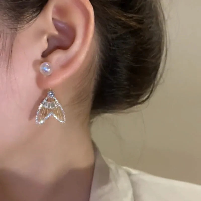 - 1 Pair *Sparkling Mermaid Pearl Fishtail Earrings