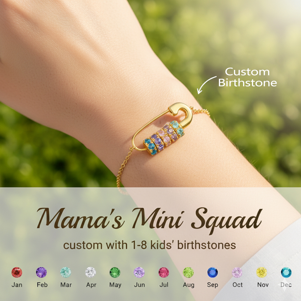 Mama's Mini Squad Safety Pin 1-8 Birthstone Bracelet