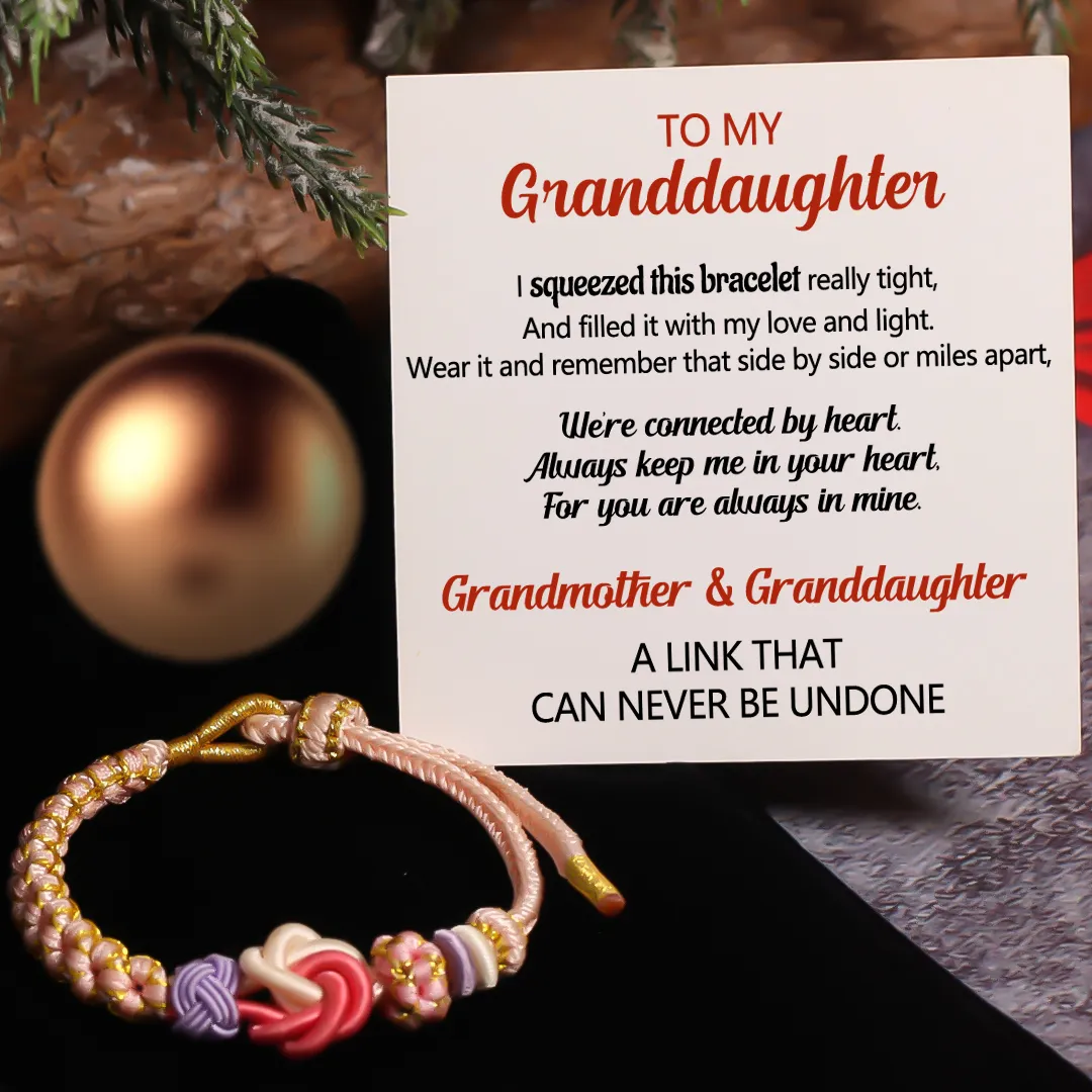 The Peach Blossom Knot bracelet is delicately crafted from intertwining threads, one a tender pink, the other a pure white. The pink strand embodies the spirit of a cherished grandmother, while the white thread embodies the grace of a beloved granddaughter. These threads entwine, much like the unbreakable bond between generations, where grandmother and granddaughter find solace in each other's embrace.