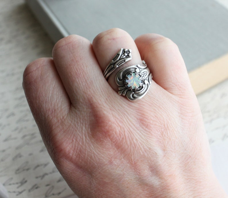 S925 STERLING SILVER WHITE OPAL SPOON RING