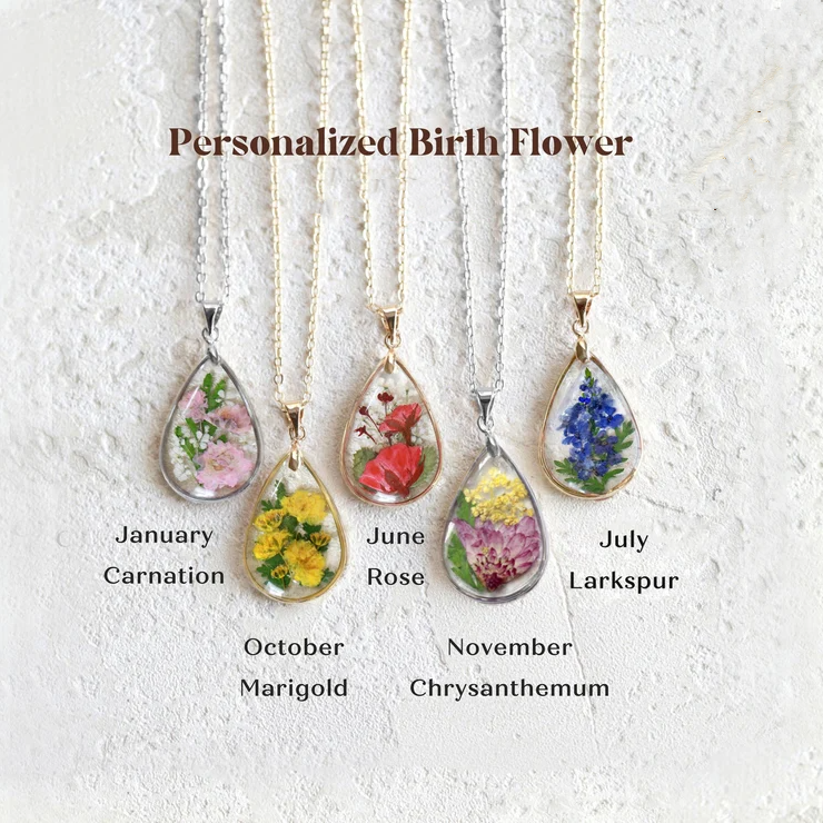 Birth flowers symbolize admiration, good luck, and protection, making this necklace not only beautiful but also meaningful.
