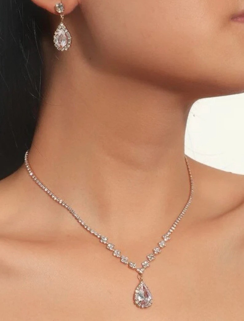 Wedding earrings necklace set fits for wedding, engagements, bridal shower, baby shower, proms, and parties