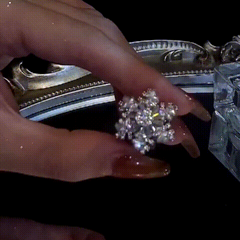 This Rotating Crystal Ring has a bearing on the top that allows you to rotate the diamond part at will. You can play it to relieve stress or have fun.