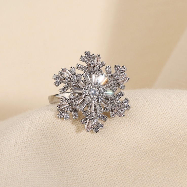 Elegant Rotating Crystal Snowflake Ring