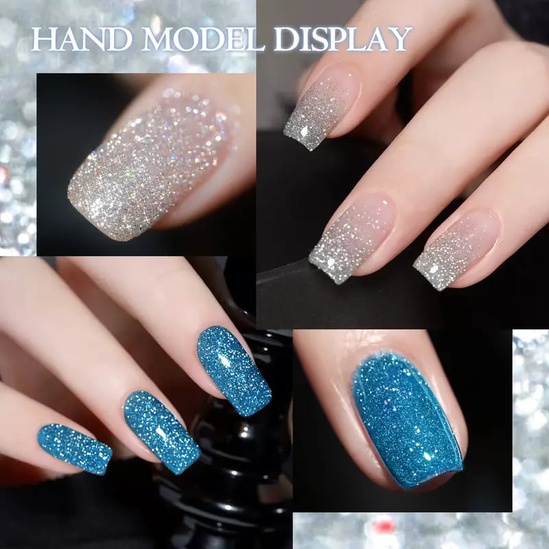 3. Use the holographic reflective gel to make a gradient effect and cure it.
