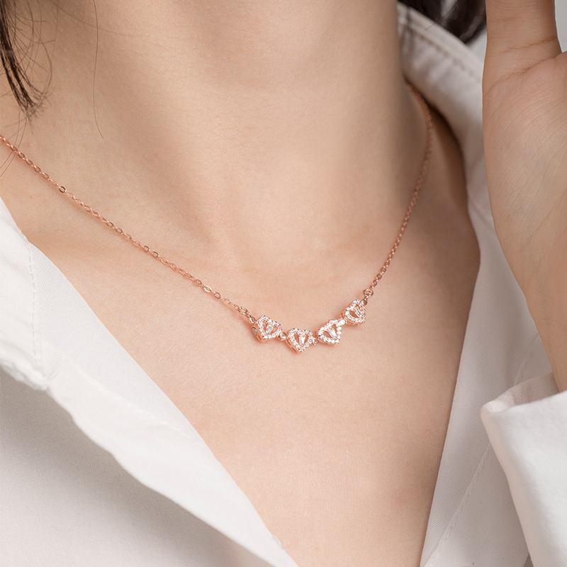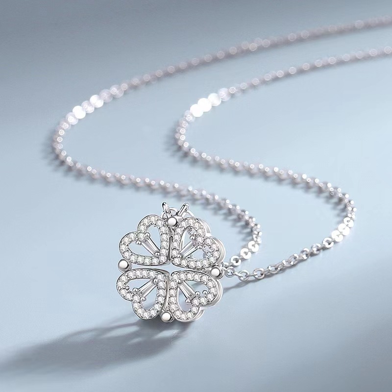 The Necklace can be worn in 2 ways: lucky Clover and romantic four Hearts. The pendant magnetically joins the hearts into the clover